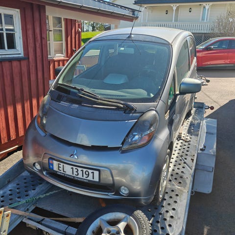 Mitsubishi i-MiEV elbil. Kompakt elektrisk bil med fire dører, egnet for bykjøring og korte avstander. Bilen har et karakteristisk design med stor bakrute og liten størrelse som gjør den lett å manøvrere i trange byområder. Bilen lader ikke 12V. Vet ikke om andre feil og mangler. Bilen har stått parkert i over 2 år. Selges høystbydende.