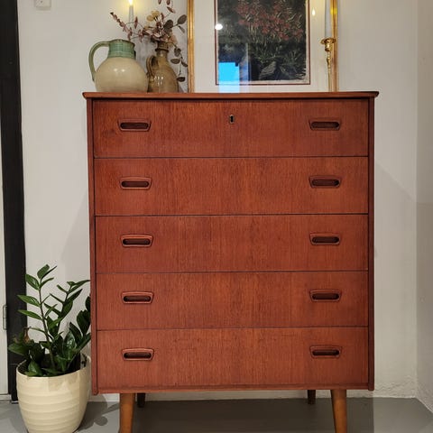 Hvitmalt retro kommode. Antakeligvis opprinnelig i teak men malt i «nyere» tid.