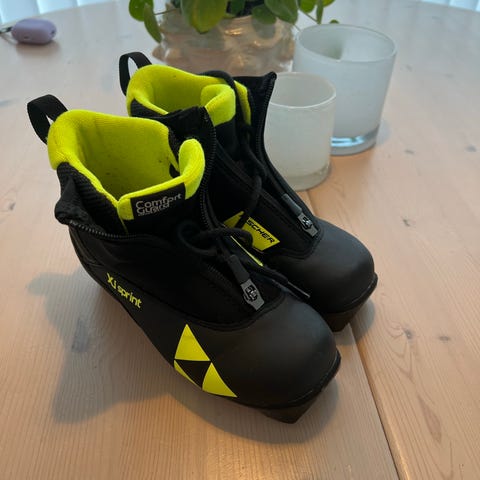 Fischer XJ Sprint langrennsko i størrelse 29. Skoene har glidelås foran og er laget for barn. Anbefaler å gå en størrelse opp ift hva barna bruker til vanlig siden Fischer er små i str.