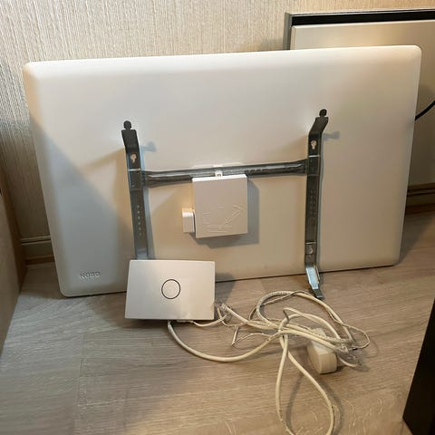 Veggfeste følger med.