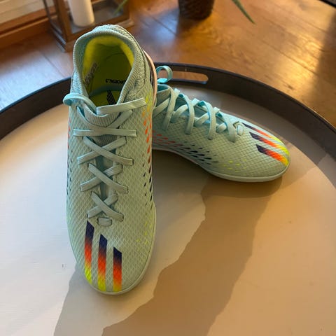 Veldig lite brukte junior futsal sko fra Adidas selges billig. Kun brukt noe få ganger til innendørs fotball. Kan sendes eller hentes på Hasle. Størrelse 37 1/3.