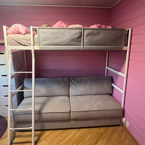 IKEA Mydal køyeseng i furu som er hvitmalt. Nypris 3.450,-