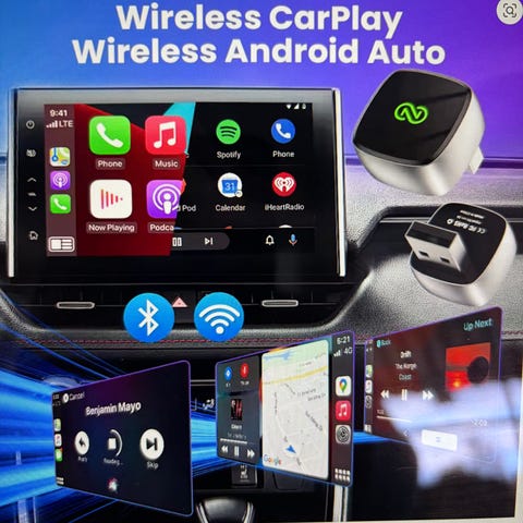 Trådløs CarPlay-adapter som muliggjør trådløs tilkobling til bilens fabrikktilkoblede CarPlay-system. Kompatibel med iPhone og flere bilmerker for enkel bruk av CarPlay uten kabel.