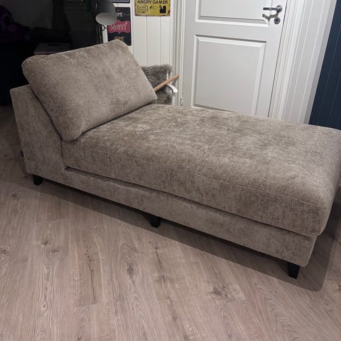 Pent brukt hjørnesofa med pall fra Hjellegjerde. Ny i 2019. Farge lys grå. Slitesterkt stoff, ikke vært utsatt for sollys. Vendbare puter. Ryggputene er i dun og sitteputene har kaldskum i midten + dun over og under. Trekkene er avtagbare og kan vaskes. Sofaen kan speilvendes.