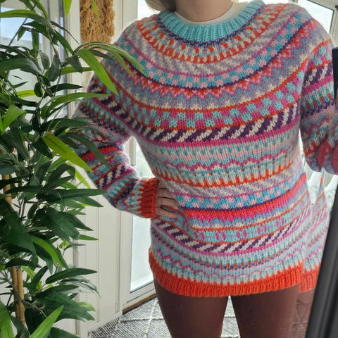 Fine hjemmestrikket genser. Sånn ca mål (med variasjon);