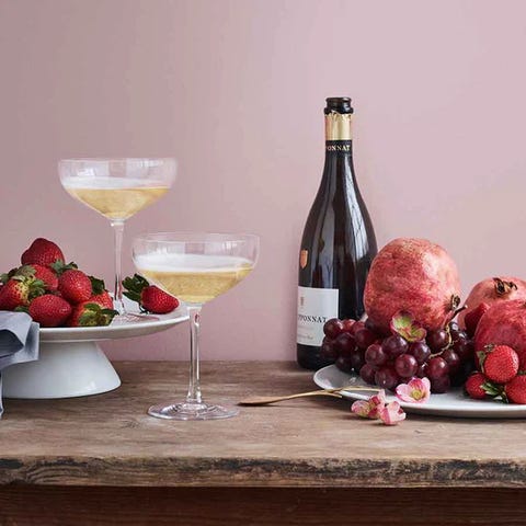 Morsomt sett med likør- eller snapsglass på et matchende glassfat.
