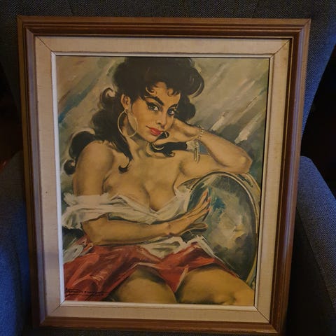 Fint bilde med ramme, er I fin stand. Reproduksjon. Samleobjekt. Mål høyde 51 cm. Bredde 41 cm. Pris 750. Må hentes i Oslo, sender ikke.
