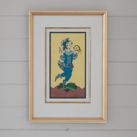 Bjørn Wiinblad kunstplakat fra 1994 med motiv av en figur som holder en fakkel. Plakaten har blå og hvite farger med tekst i midten. Innrammet i en enkel ramme.