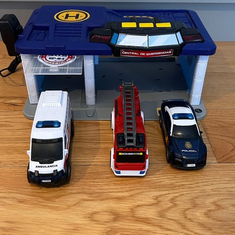 Både biler og garasje har lyd/musikk.
