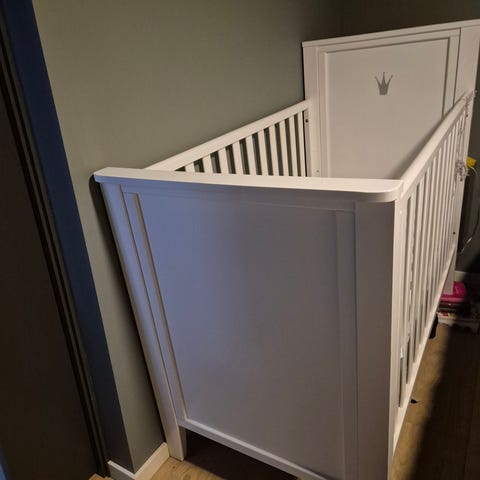 Flexa Sprinkelseng til barn / spedbarn. Justerbar høyde. Med madrass