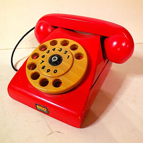 Fisher Price Chatter telefon leketøy med hjul i plast. Telefonen er fra 1980 tallet.