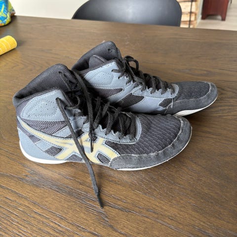 Asics Kampsport sko i blå farge, størrelse 37. Designet for kampsport med høy ankelstøtte og slitesterkt materiale.