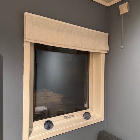 De er akkurat litt for smale for vinduene og ble aldri byttet inn igjen på butikken. De er ubrukt. Ikke hengt opp. Ett stk er tatt ut for å skulle henge opp.