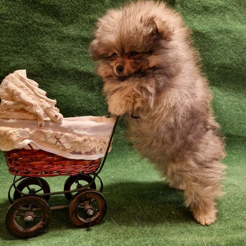 En nydelig og ekstremt liten Pomeranian valp er klar for reservasjon. Han er utrolig rolig, nesten helt stille, veldig kosete og kjempesosial. Liker å være nær mennesker, men klarer seg også fint alene uten stress eller lyd.