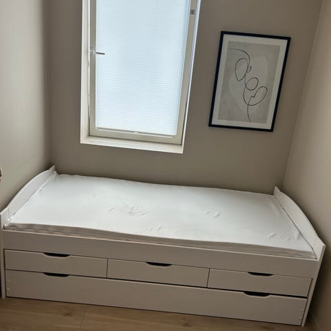 Pent brukt |KEA Flaxa seng med ekstra uttrekkbar seng under.