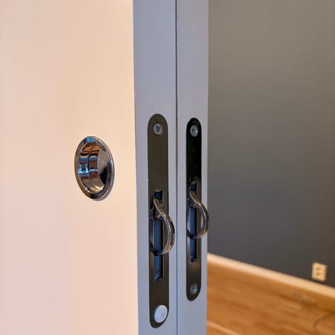 Selger en pent brukt innvendig skyvedør, komplett med alle deler.