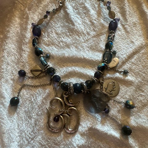 Pent brukt, sølvkjede, med anheng med pen sten.