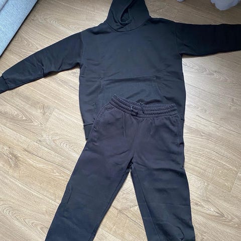 H&M joggedress i størrelse S for herre, laget av bomull. Fargen er blå. Settet består av hettegenser med lomme og tilhørende joggebukse med elastiske mansjetter.