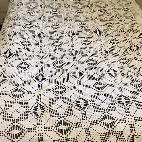 Håndbrodert gammel nydelig duk i bomull. Flotte røde brodert rosemønster!