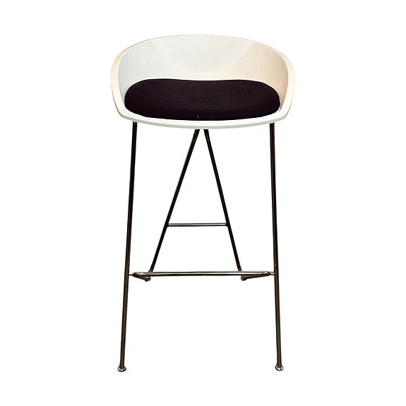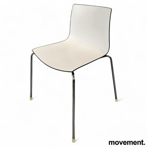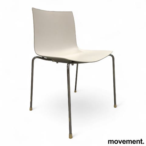 Produktbeskrivelse Moderne møteromsstol fra Arper med et stilrent og funksjonelt design. Stolen er helhvit og har et enkelt, men elegant uttrykk som passer perfekt inn i både møterom og kontorlandskap. Den polstrede setekonstruksjonen gir god komfort, og den minimalistiske formen gjør det enkelt å kombinere med ulike innredningsstiler. Spesifikasjoner Modell: Catifa Farge: Hvit Materiale sete: Plast Materiale ramme: Metall Mål: Bredde 45 cm, Dybde 42 cm, Høyde 79 cm, Sittehøyde 47 cm Tilstand Stolen er god tilstand med noen mindre bruksmerker, men helhetsinntrykket er fortsatt svært godt. Den er klar til bruk og vil gi et stilrent preg til ethvert rom.