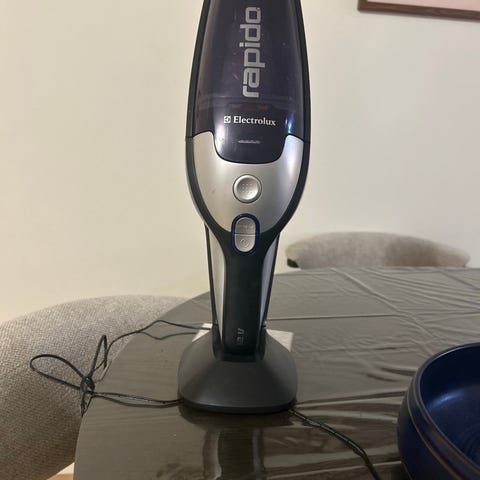 Electrolux håndstøvsuger i hvit farge. Designet for enkel rengjøring av mindre områder og vanskelig tilgjengelige steder. Kompakt og lett håndholdt modell. Brukt kun noen få ganger. Rullene under er som nye. Kan være behjelpelig med levering Drammen/Oslo området.