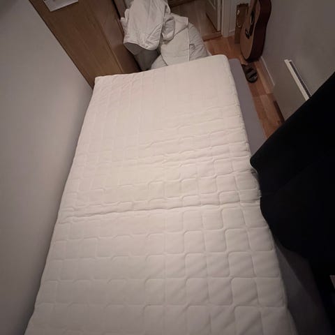 Overmadrass i hvit farge.