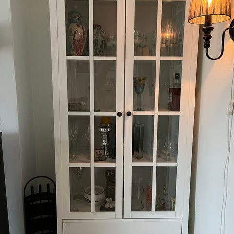 Flott skap i to deler , 36,5 cm dypt, 196,5 cm høyt , 88,5 cm bredt . Glasshyller . Lys . Ingen skader. Målene er for skapet til høyre i bildet . Se egen annonse for skapet til venstre. Selges gjerne samlet . 500 kr for alt