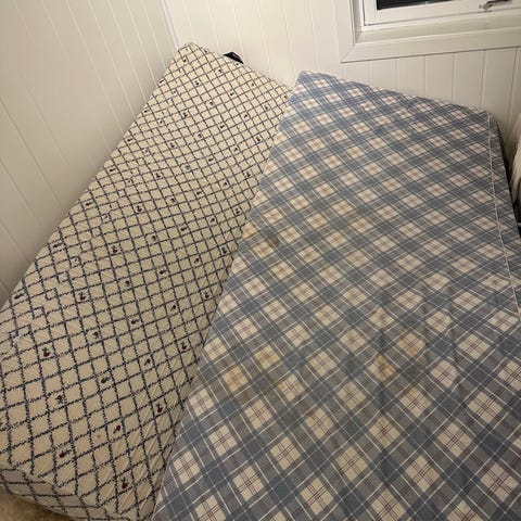 2 stk rammemadrass a 75 cm per stk gis bort. Pent brukt. Ingen overmadrass