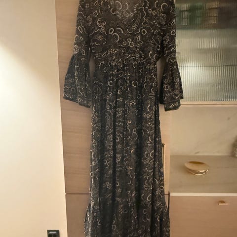 Nå har du sjansen til å kjøpe en fantastisk flott maxi kjole fra Valery Vain. Nydelig, lett og flatterende sommerkjole. Vakre detaljer, 100% viscose som gjør at kjolen faller fint. Kjolen er brukt en gang, er dessverre for stor. Størrelse L.