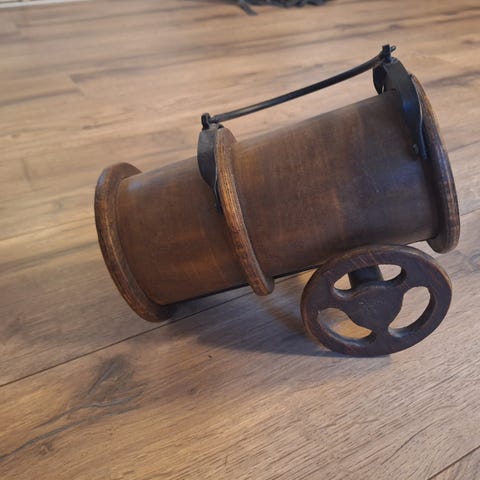 Vintage fransk victoriansk kjerubkanne i metall. 40 cm høy.