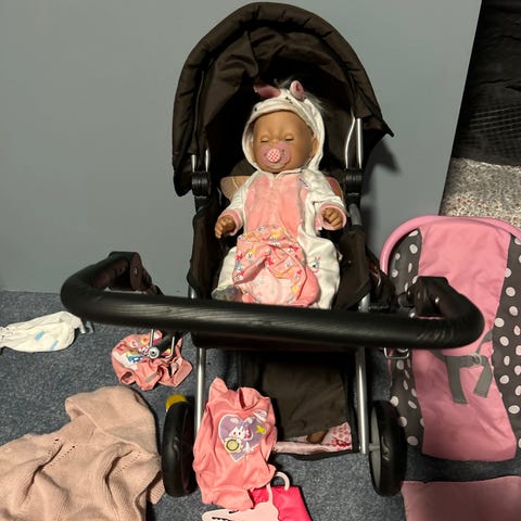 Baby Born bæresele til dukke i rosa farge med mønster av enhjørning. Laget for barn og tilpasset lek med dukker.