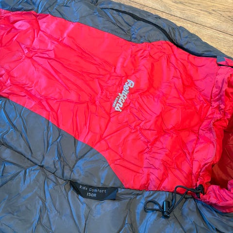 Bergans MX-Sport JR sovepose i rød farge, designet for barn med en lengde på 150 cm. Soveposen har detaljer i grått og er egnet for juniorbruk.