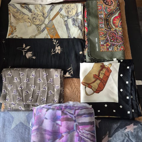 4stk dameskjerf (tubeskjerf) med ulike farger og mønstre. Selges for 20 kr pr stk eller 50 kroner samlet. Pent brukt