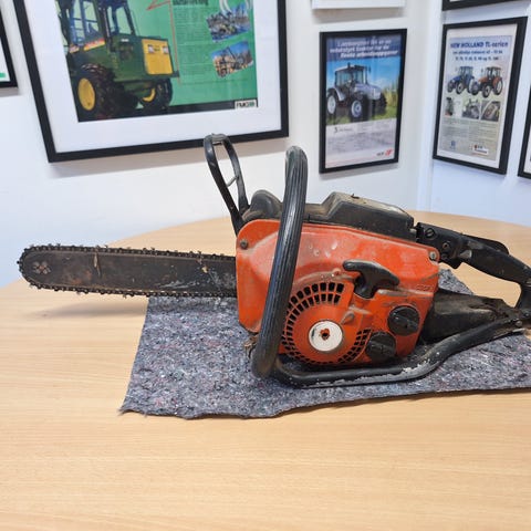 Motorsagen kommer fra et dødsbo, har derfor ikke noe mer info om den. Lagret i mange år. Kan være flere feil som jeg ikke har oppdaget.