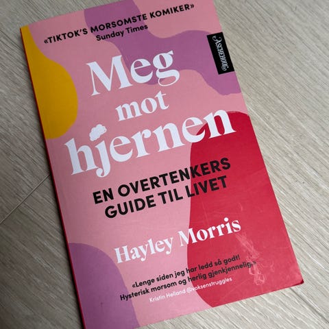 Hayley Morris Meg mot hjernen bok. En guide for overtenkere som utforsker hvordan tanker påvirker livet og hvordan man kan håndtere overtenkning.