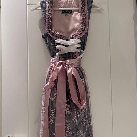 Nydelig og klassisk dirndl fra Krüger i delikat roséfarge. En feminin og gjennomført tradisjonell kjole med flotte detaljer og høy kvalitet – perfekt til Oktoberfest, folkefest, bryllup, temafest eller andre anledninger der bunad/dirndl er ønsket.