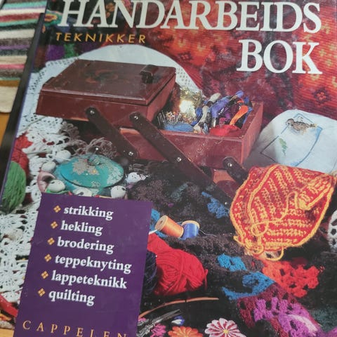 Hovedsaklig om handarbeide: Strikkeoppskrifter, hekling, broderi.
