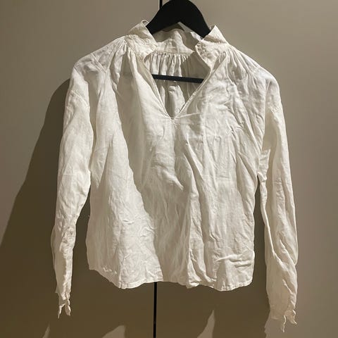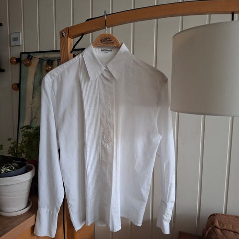 Skjorten er ikke strøket da jeg tok bilde, den er heller ikke gul. Er dårlig lys.
