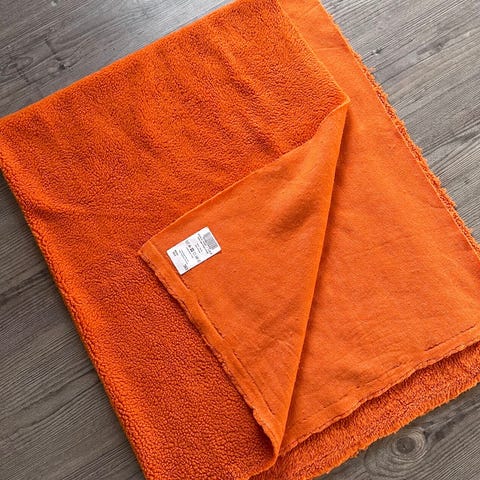 1 meter beige og 1 meter hvit teddy stoff i bomull. Kjøpt på designstoff.no.
