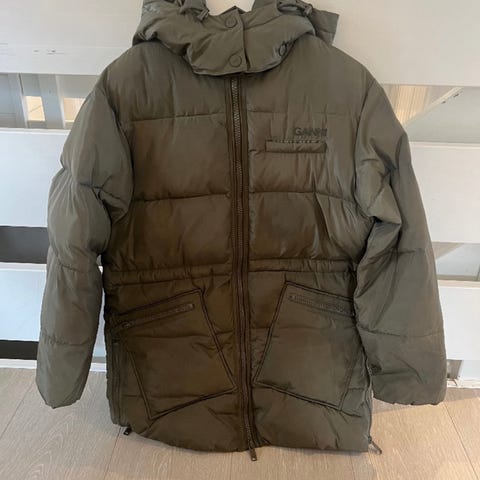 Selger min pent brukte og varme Ganni boblejakke. Størrelse 32, tilsvarer XS/S. Praktisk jakke med mange lommer 3 synlige lommer og to stor usynlige med glidelås, samt hette. Kan sendes mot at kjøper betaler frakt.