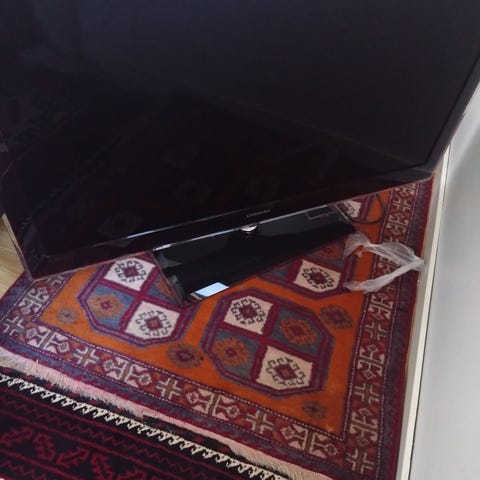 Samsung UE46ES6710S TV med 46 tommers skjermstørrelse. Modellen har flere tilkoblingsmuligheter inkludert HDMI, USB og nettverksport. TV-en leveres med fjernkontroll og strømkabel. Typisk strømforbruk er 62W.
