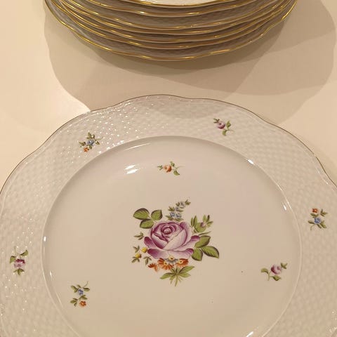 -fire 28 cm middagstallerken fra Herand Queen Victoria, håndmalt.