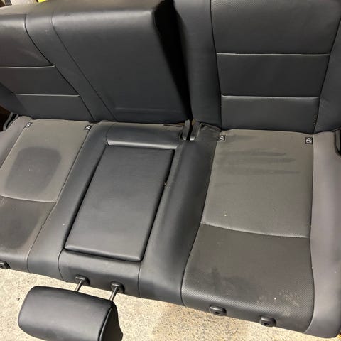 Bilsete bakseter i svart skinn. Setene har tre seter og er til Toyota hilux