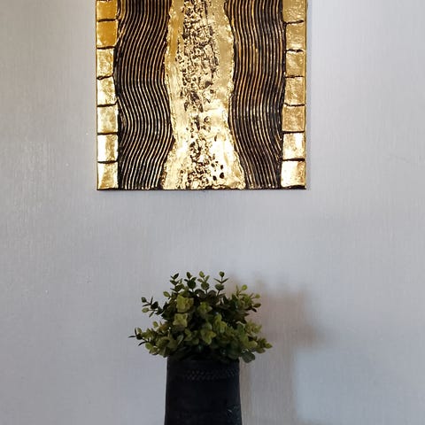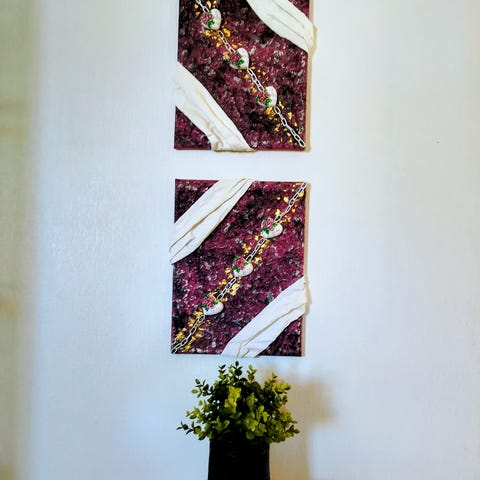 Abstrakte malerier med tøy og gips.