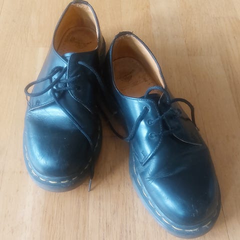 Dr. Martens snøresko i størrelse 40. Skoene er svarte og laget av lær. Passer til bruk som formelle eller semi-formelle sko. Lite brukt, og pent ivaretatt.