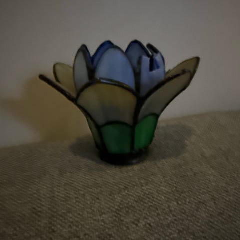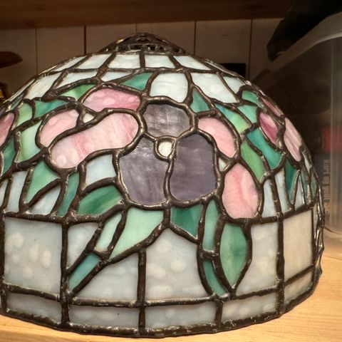 Den er laget av farget glass, satt sammen med tinn eller kobberfolie.