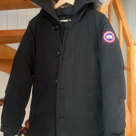 Canada Goose vinterjakke- chateu parka i mørk blå farge, størrelse M. Jakken er designet for menn og egner seg til bruk i kalde vinterforhold.