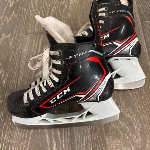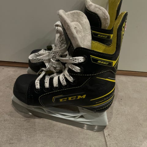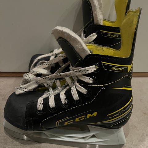 CCM Ishockeyskøyter for barn i størrelse 33. Skøytene har svart og gul farge, og er designet for ishockey. Materialet og designet er tilpasset for å gi støtte og komfort under hockeyspill.