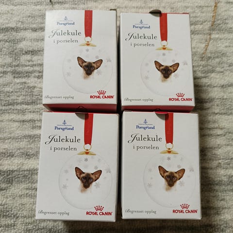 Royal Canin julekule i porselen. Ny. Pris per set.