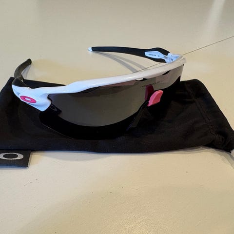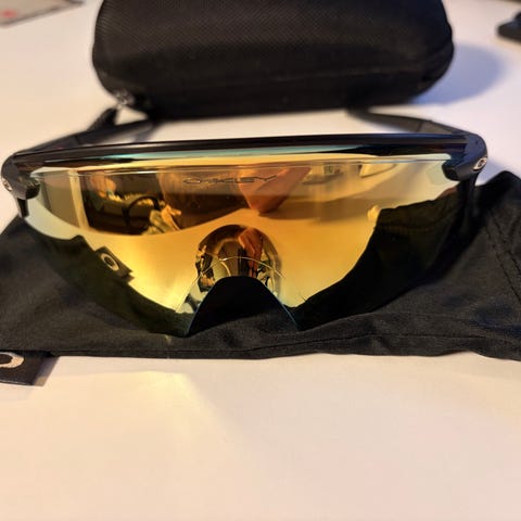 Oakley solbriller for unisex bruk. Inkluderer etui og støvpose for oppbevaring. Noen merker nederst på glasset på høyre side (se bilde), men utenfor synsbildet
